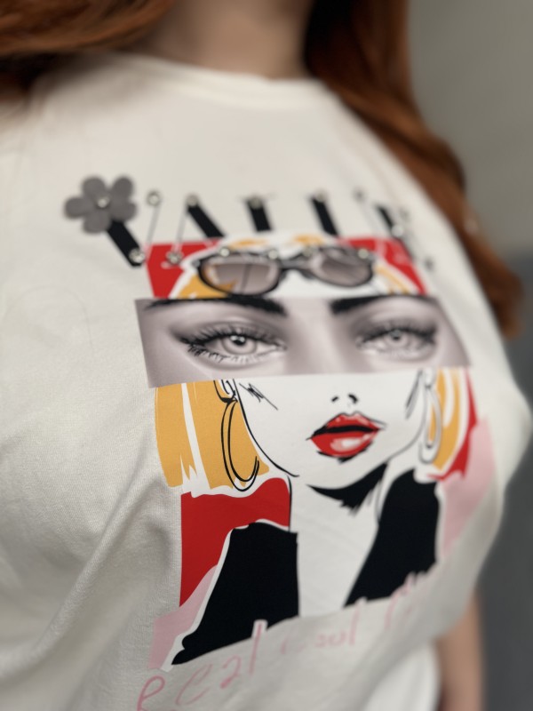 Μπλούζα Νημάτινη Με V Ντεκολτέ Και Χρυσή Καρφίτσα